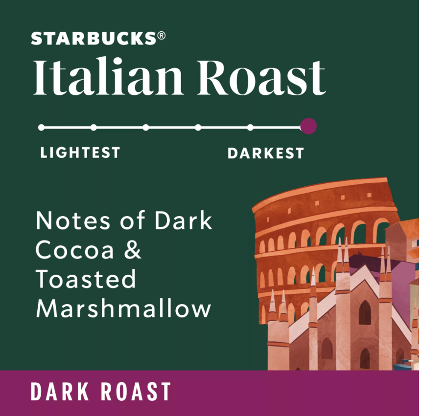 Indulge in the distinct tones of the Keurig K-Cup Pods Starbucks Italian Roast Coffee. This dark roast blend is full of deep flavor and offers an intense taste that pairs well with cream and sugar. Made from quality Arabica beans.